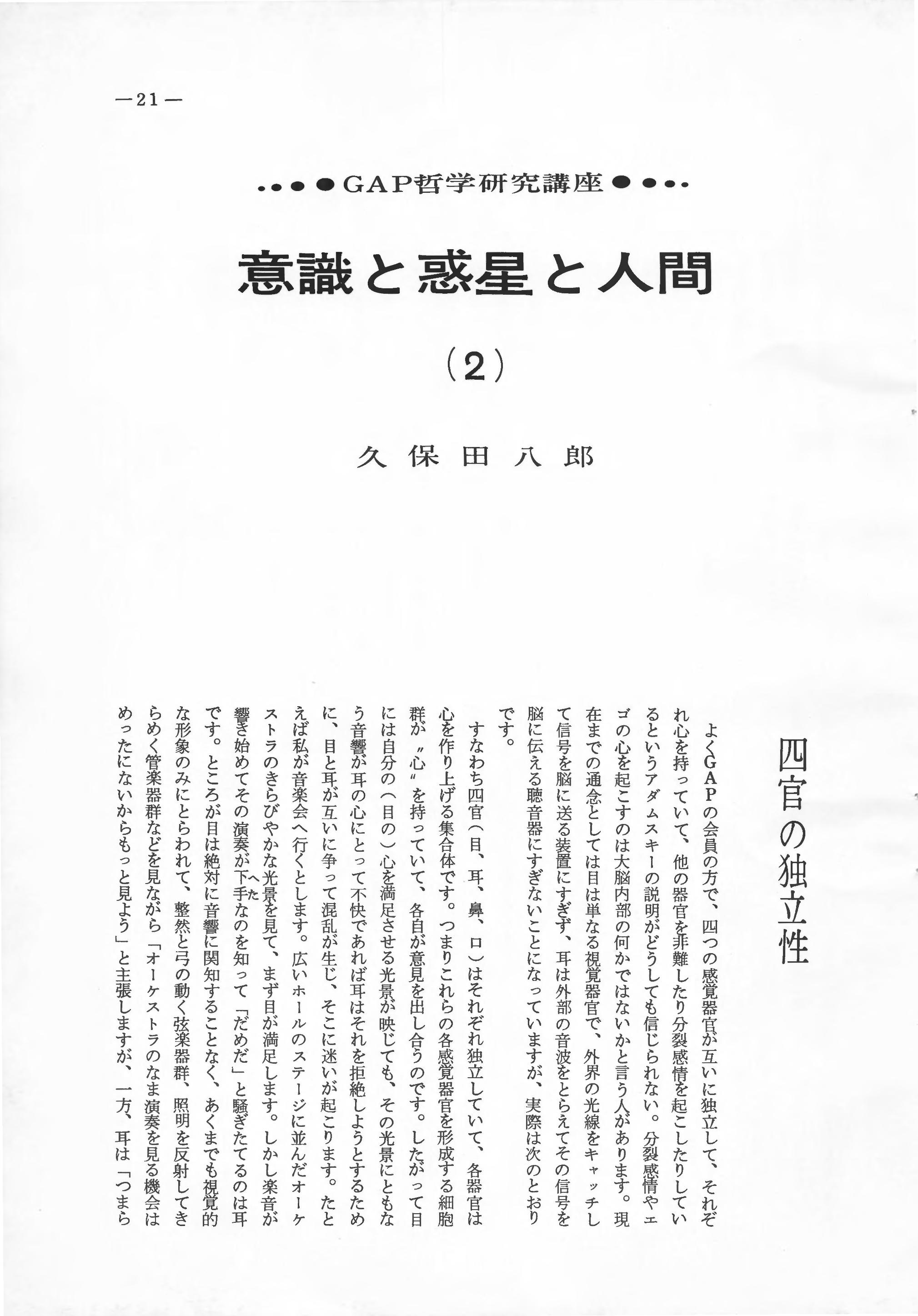 <GAP哲学研究講座>意識と惑星と人間(2) 久保田八郎 21