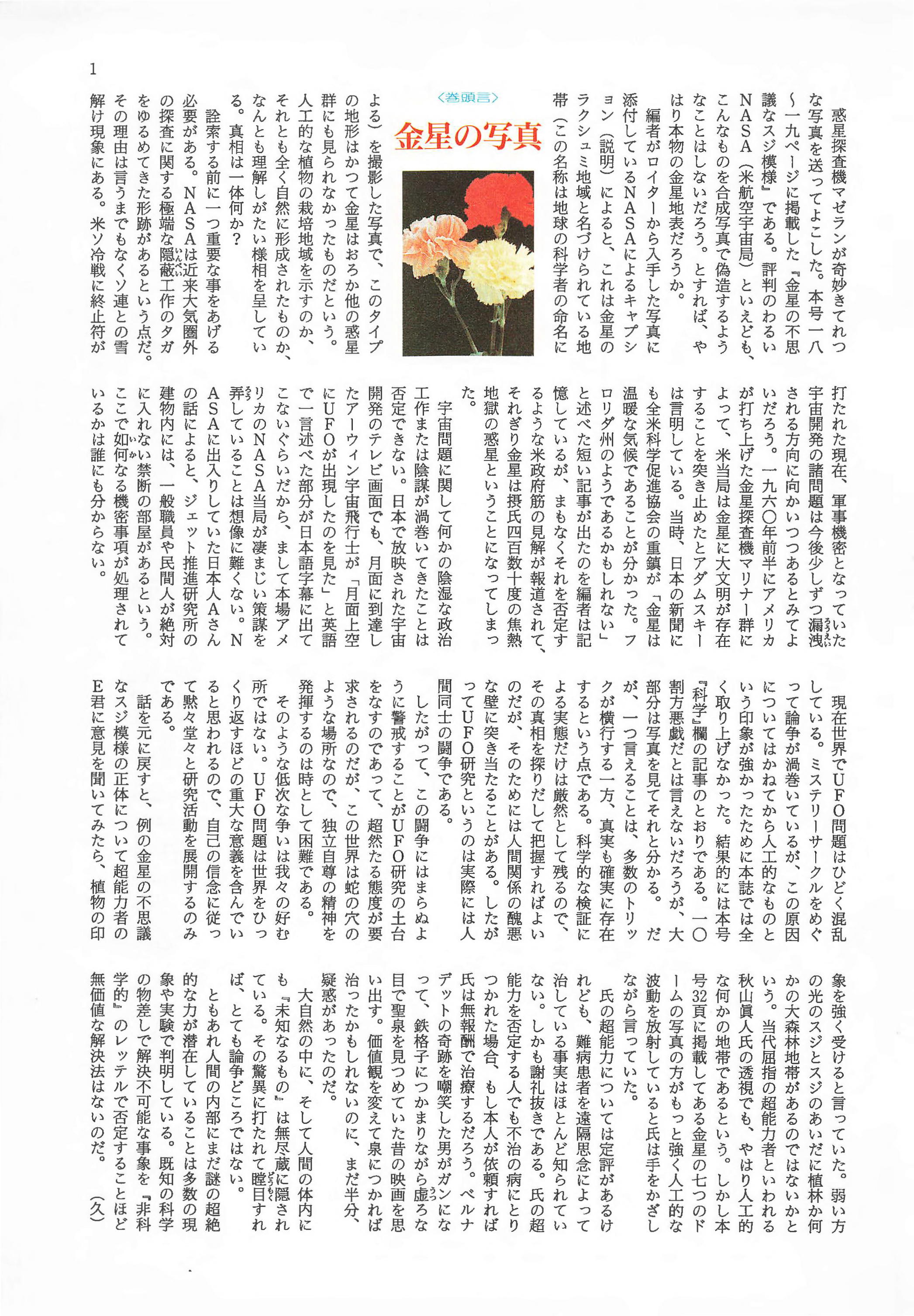 <巻頭言>金星の写真―――――――――――――――――――― 1アダムスキー問題と日本GAP―――――――――――久保田八郎 2