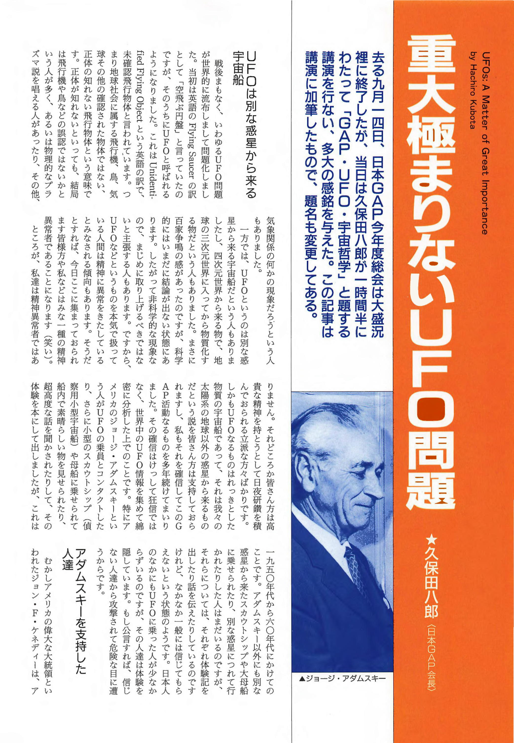 <巻頭言>真実と虚偽――――――――――――――― 1重大きわまりないUFO問題―――――――久保田八郎 2